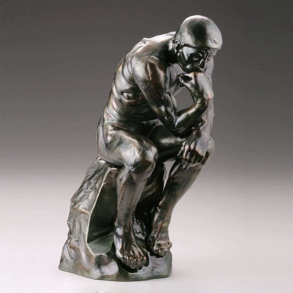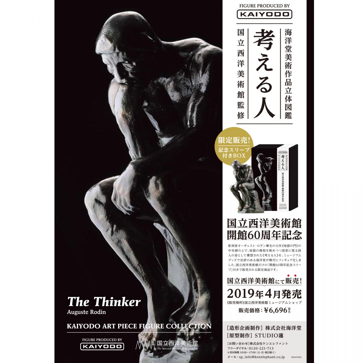 彫刻家オーギュスト・ロダン畢生の大作《地獄の門》の 中央扉の上で、地獄の様相を眺めつつ思索に耽る詩人の姿として構想された《考える人》を、ミュージアム グッズで定評のある海洋堂が精巧にフィギュア化しました。国立西洋美術館だけの『60周年記念スリーブ』 付きで販売される限定商品です。