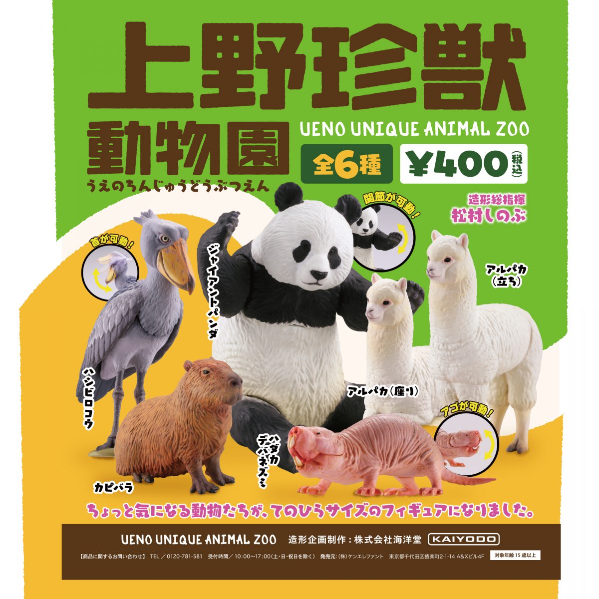 ハシビロコウ、アルパカ、ハダカデバネズミ、カピバラ、パンダなどあなたの好奇心をくすぐる珍獣をミニチュアフィギュア化!国宝のミニチュアや海外の博物館のレプリカも手がける世界的造形集団・海洋堂が造形を担当した珍獣オールスター!