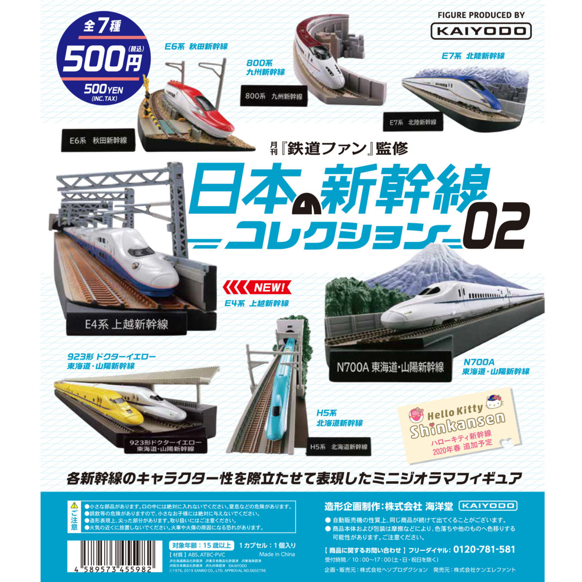 各新幹線のキャラクター性を際立たせて表現したミニジオラマフィギュア『月刊鉄道ファン監修 日本の新幹線コレクション第2弾』。ラインナップは、第1弾『月刊鉄道ファン監修 日本の新幹線コレクション』の全6種に「E4系上越新幹線」を加えた全7種。さらに、2020年春には「500系ハローキティ新幹線」を加えた全8種にて販売予定です。