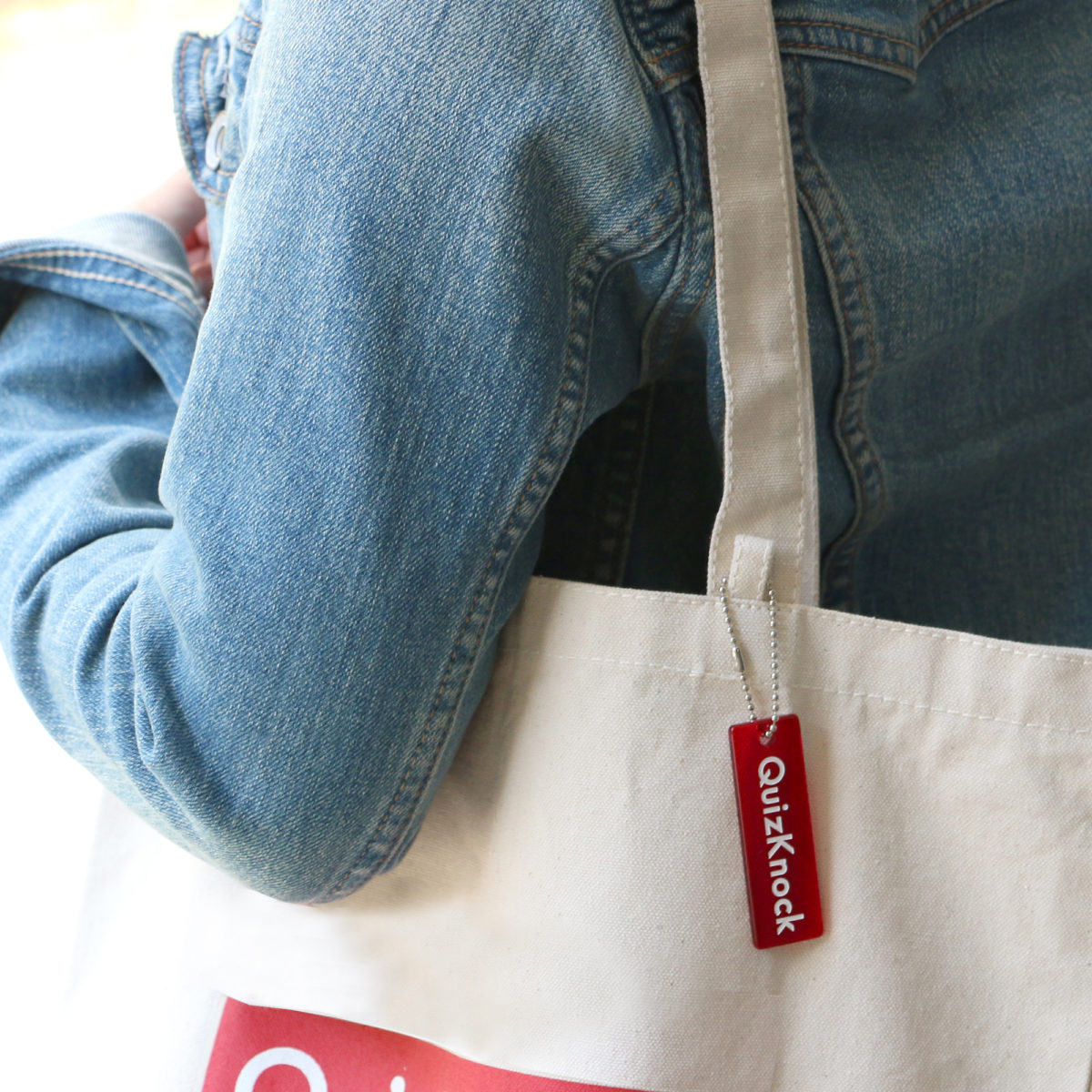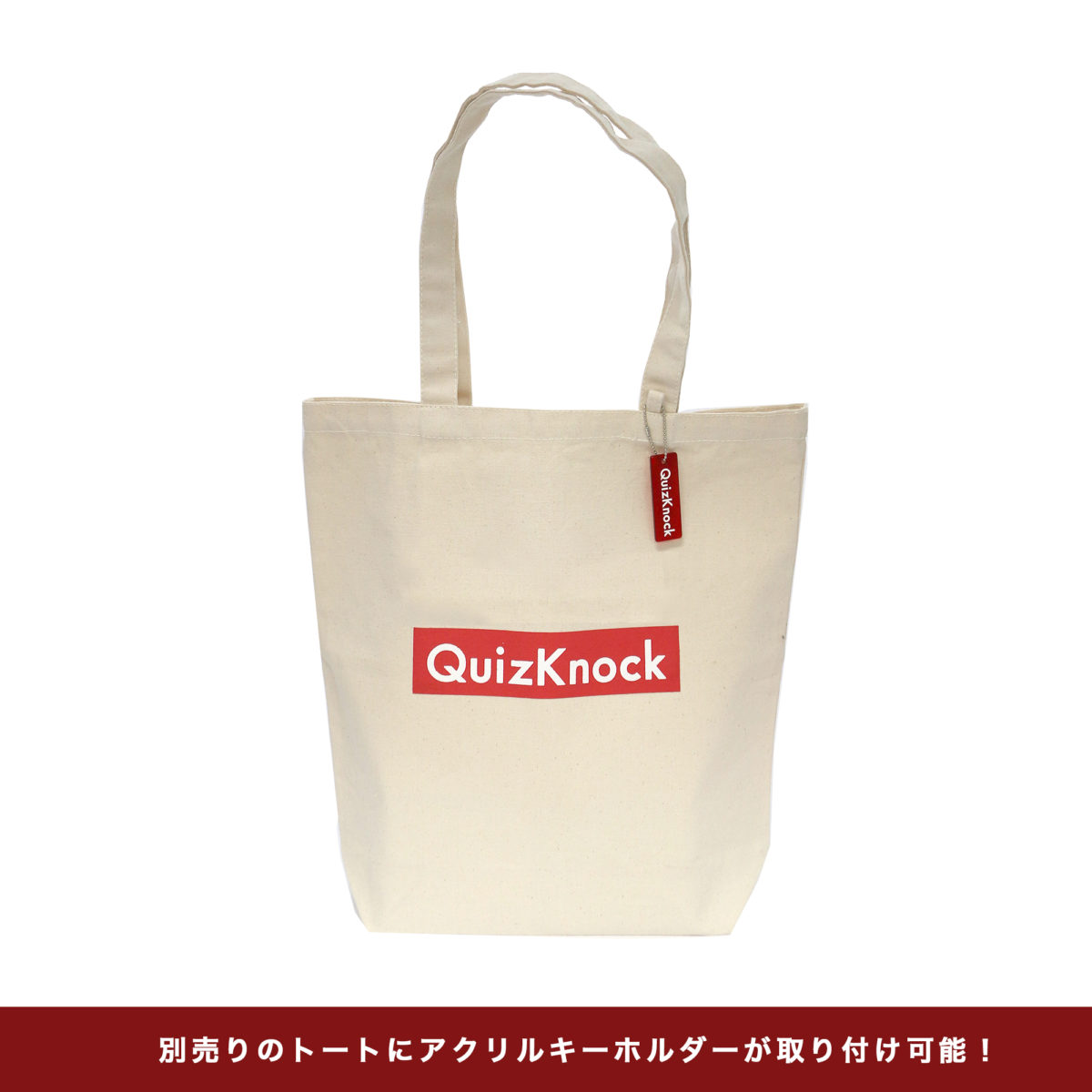 QuizKnock(クイズノック)公式グッズより、アクリルプレートのキーチェーンです。ロゴをデザインしたお洒落でカッコいいアイテム!通学バッグに付けたり、キーホルダーしても可愛いです♪別売りのトートバッグに付けることができます!
