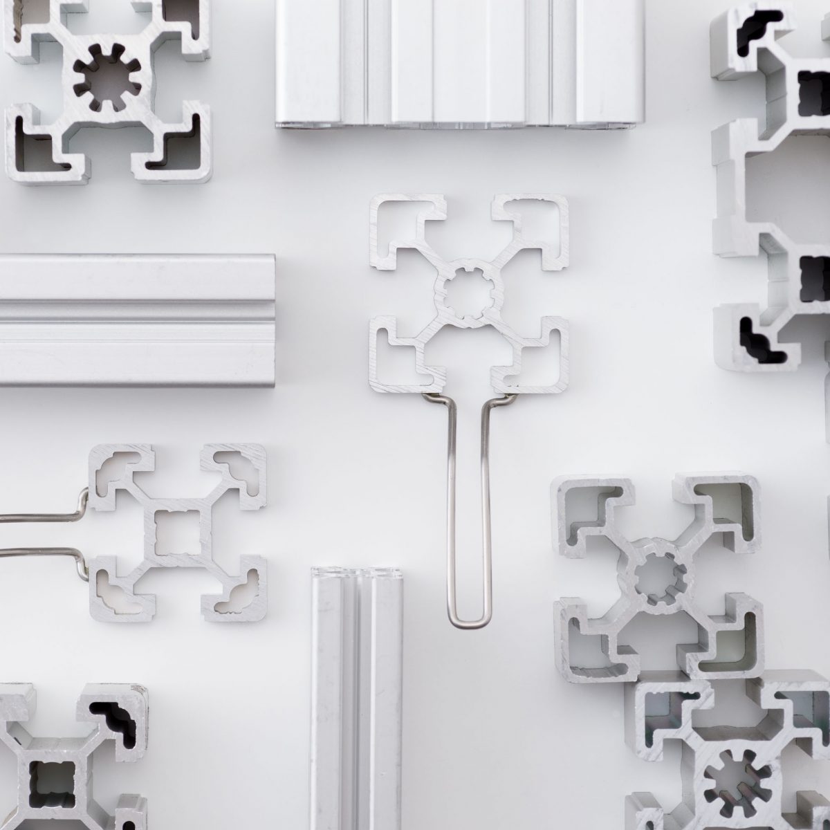 工場で使用されるアルミフレームの端材でつくられた、シャボン玉を吹く道具です。アルミ押出材の製造行程のように、このフレームに息を吹いて空気を押し出すことで不思議な形のシャボン玉をつくることができます。