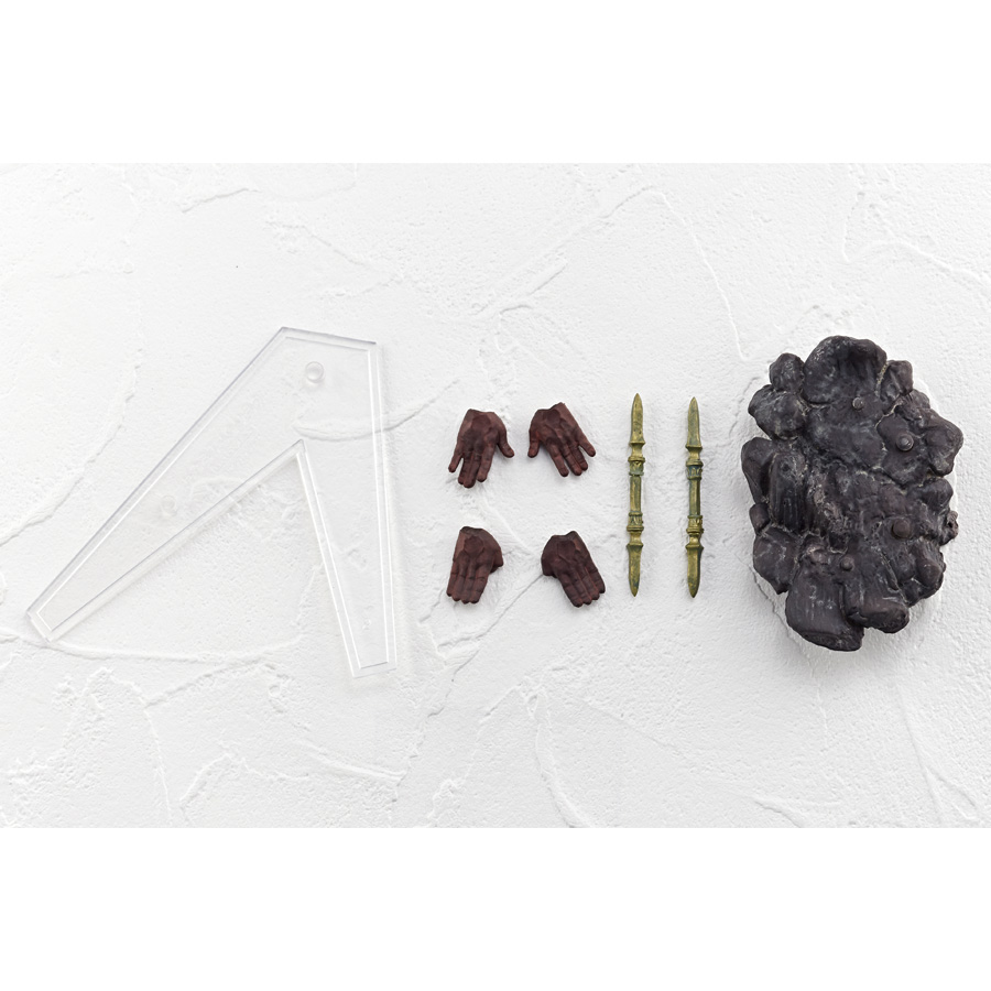 筋骨逞しく造形された上半身の肉体に軟質素材を多用しているので、守護神に相応しい豪快で猛々しい戦闘ポーズをとることが可能。
