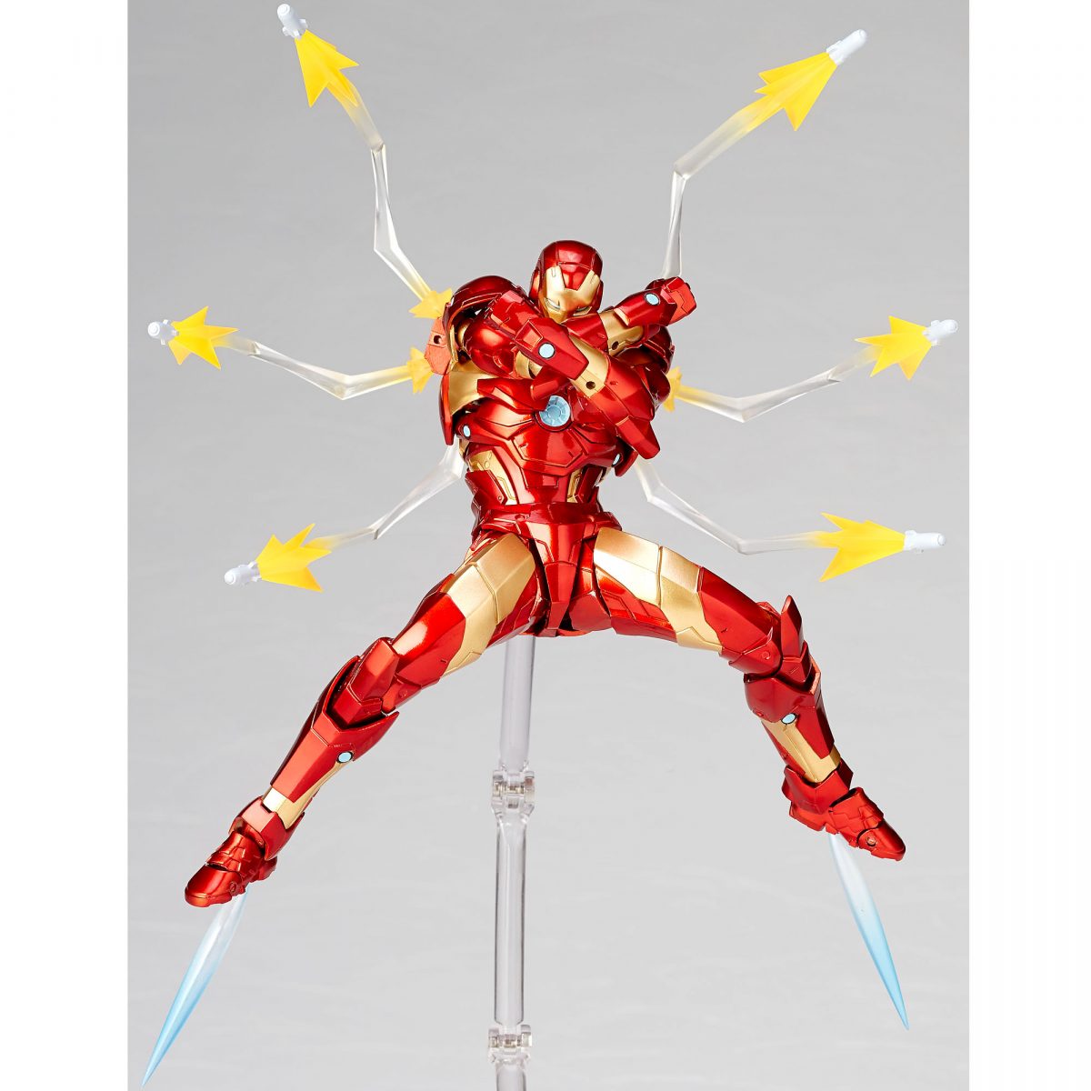 アべンジャーズのビック3の一人「アイアンマン」が、ついにアメイジング・ヤマグチに登場です!シリーズを通して工夫を重ねてきたしなやかな人体を表現する可動は、メカスーツらしいカッチリとした手ごたえを加えた構成に。『アイアンマン』の象徴となっている三点着地をはじめ、自然かつ力強く決まるポーズを、輝く赤と金のメタリック塗装が引き立てます。