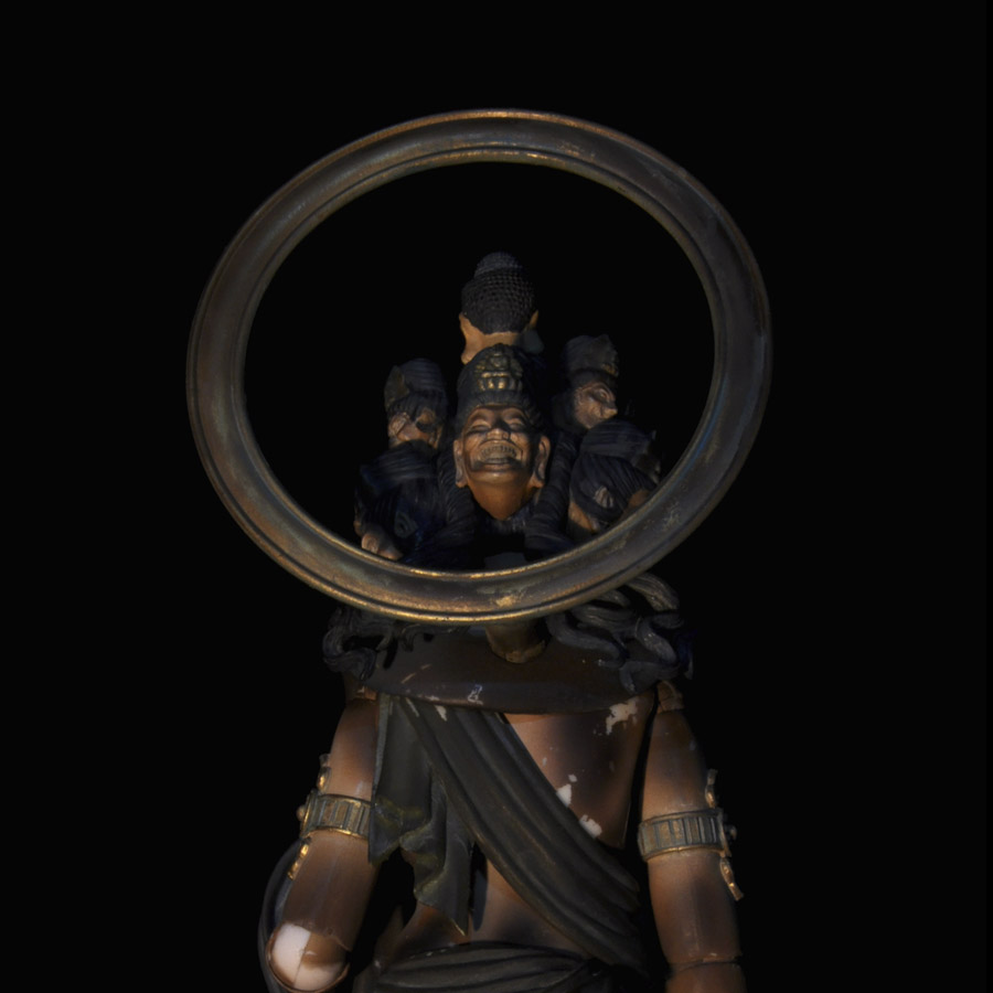 金属・布・肌とそれぞれの細部にまでこだわり、施された塗装により圧倒的な存在感を持つ「十一面観音」が完成。