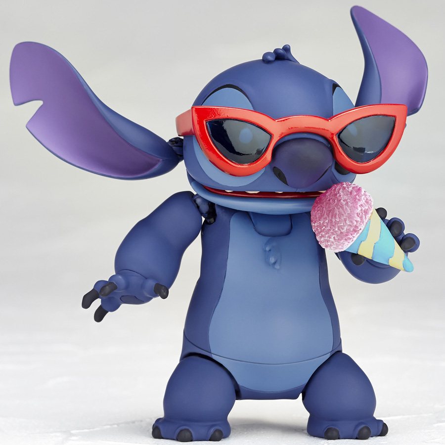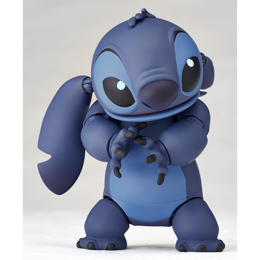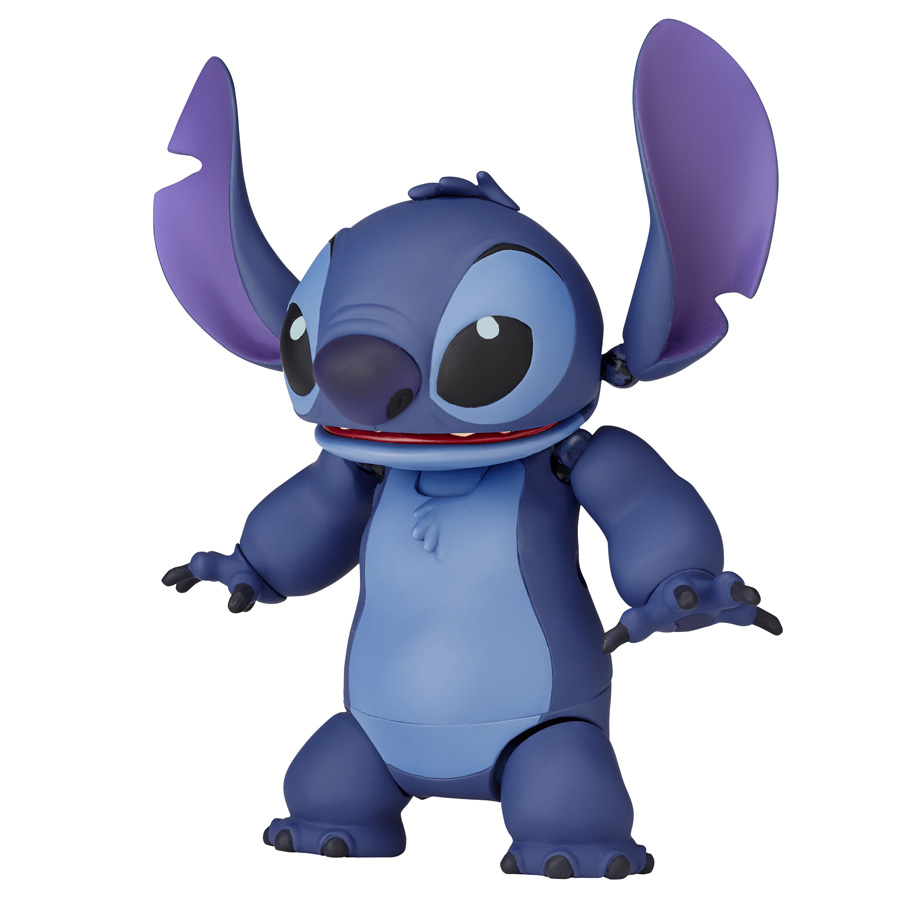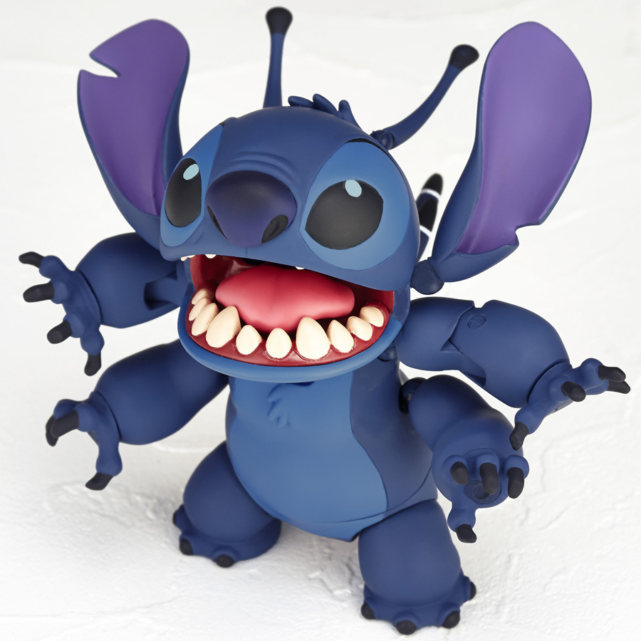 遺伝子実験によって創りだされたエイリアンという異色の出自を持つ「スティッチ」が表情豊かに可動するアクションフィギュアとして立体化。本来の姿である六本手で頭と背中に触角を持つモンスターの姿から、地球では犬になりすますために中足と触角を体内に隠しているキュートでフワフワな姿への変身を差し替えで再現できます!