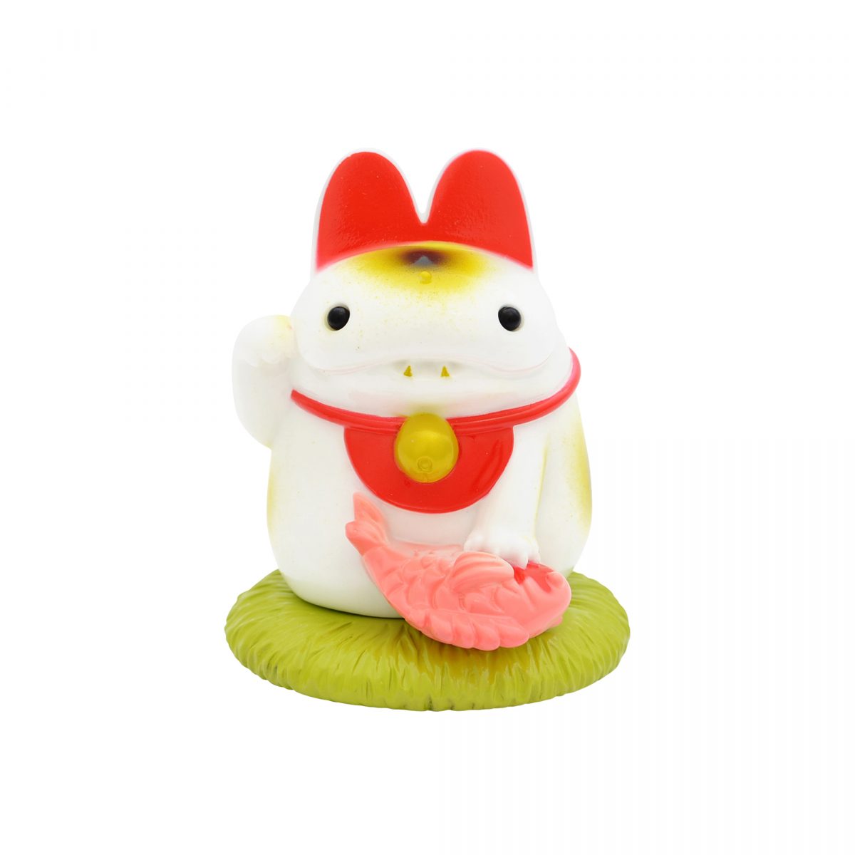 縁起物百貨店のオリジナルアイテム第一弾の招き猫シリーズ。キャラクターデザインと原型をSHOKO NAKAZAWA/KORATERSさんに手がけて頂いたアイテムです。鯛をガシッとしている、ちょこっとダークなテイストがとてもかわいい招き猫(?)です。