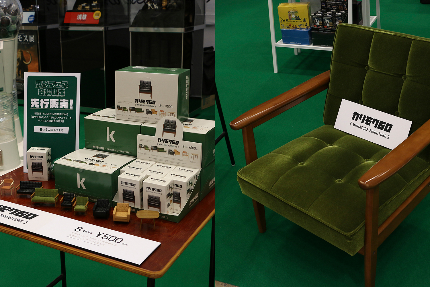 今回のミニチュアフィギュアブースの目玉はミニチュアファニチャー「カリモク60」の先行販売。他ブースのディーラーさんをはじめお客様にも大好評!カリモクさんから本物のチェアをお借りしての展示は本物とミニチュアを見比べることができる貴重な機会となりました! ◆カリモク60 ミニチュアファニチャー