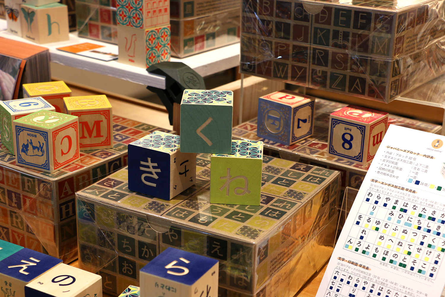 「アンクルグース」は、家具の町として栄えるアメリカ・ミシガン州グランドラピッズ郊外に佇む小さな工房で、1983年に誕生。わずか4.5センチ四方に世界中の言語や文化、自然科学、動植物などを描いて、子どもの心に宿る“興味の扉”をひらく、まるで図鑑のような木製ブロックを展開するブランドです。