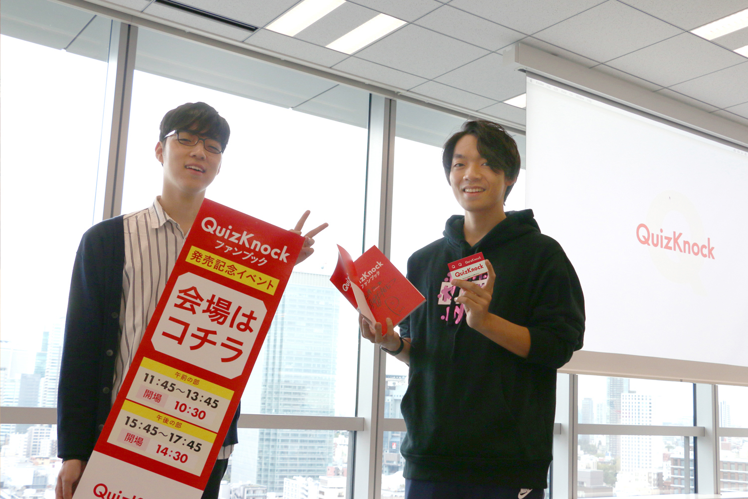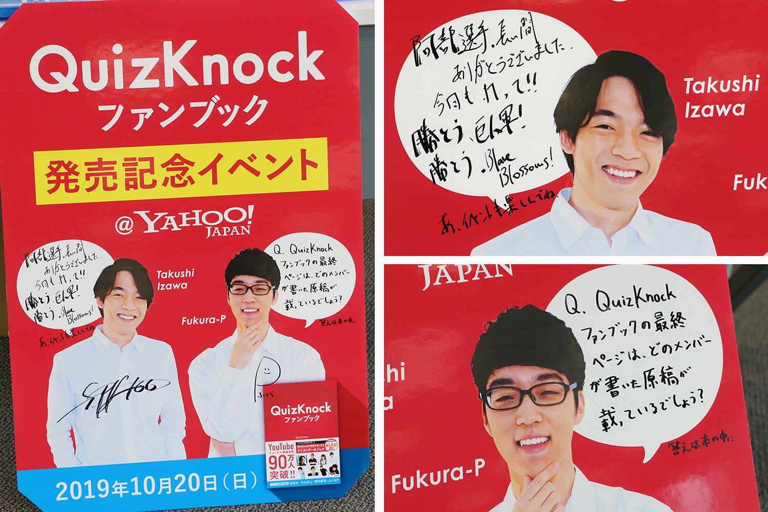 2019年10月20日(日)、Yahoo!本社にて開催された『QuizKnockファンブック』刊行記念トーク&クイズ&サイン本お渡し会。QuizKnock編集長の伊沢拓司さん、動画プロデューサーのふくらPが登壇し、昼の部と夜の部の二部制で行われた今回のイベント。500人ものファンの方たちにお越しいただきました!