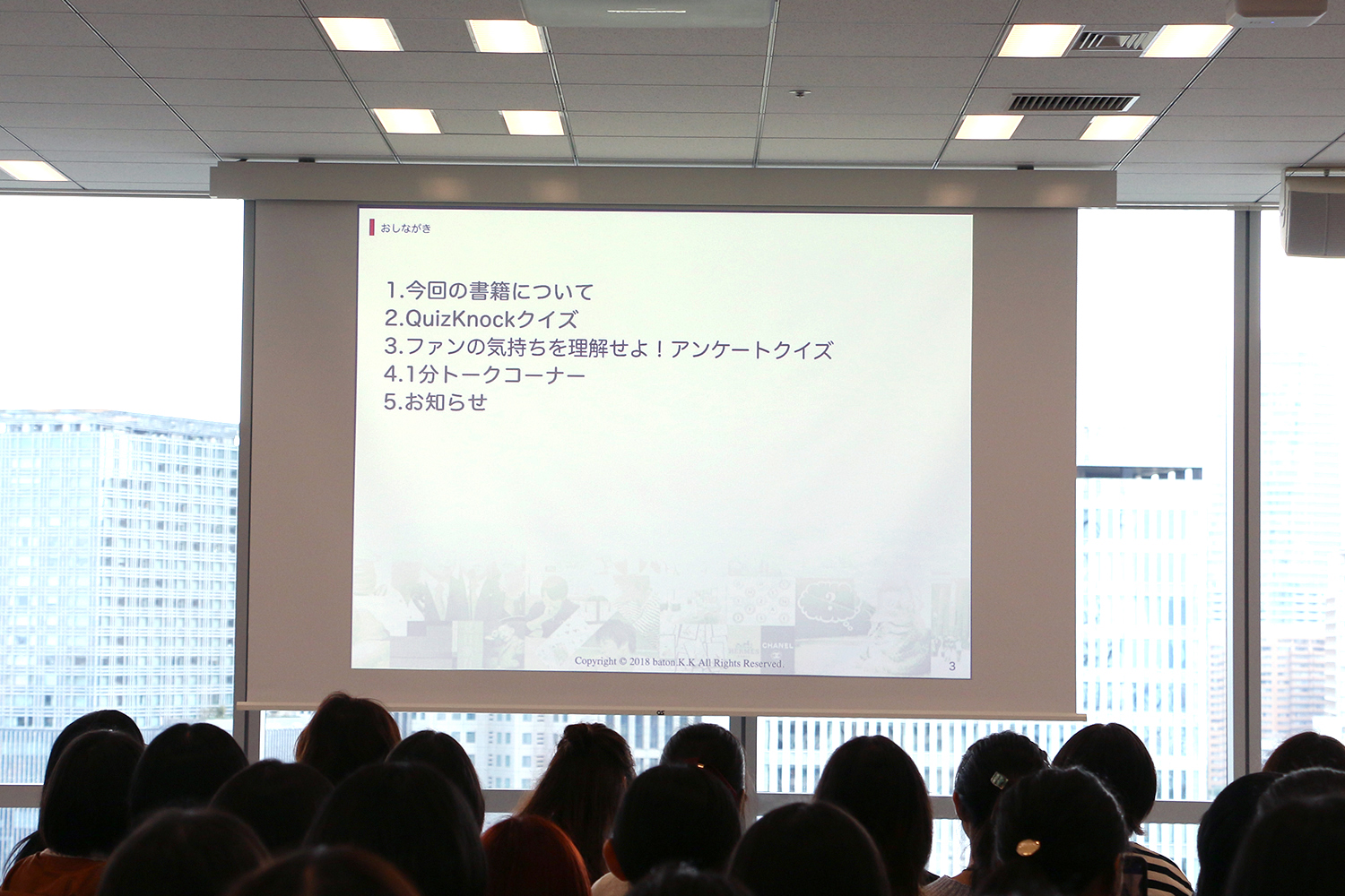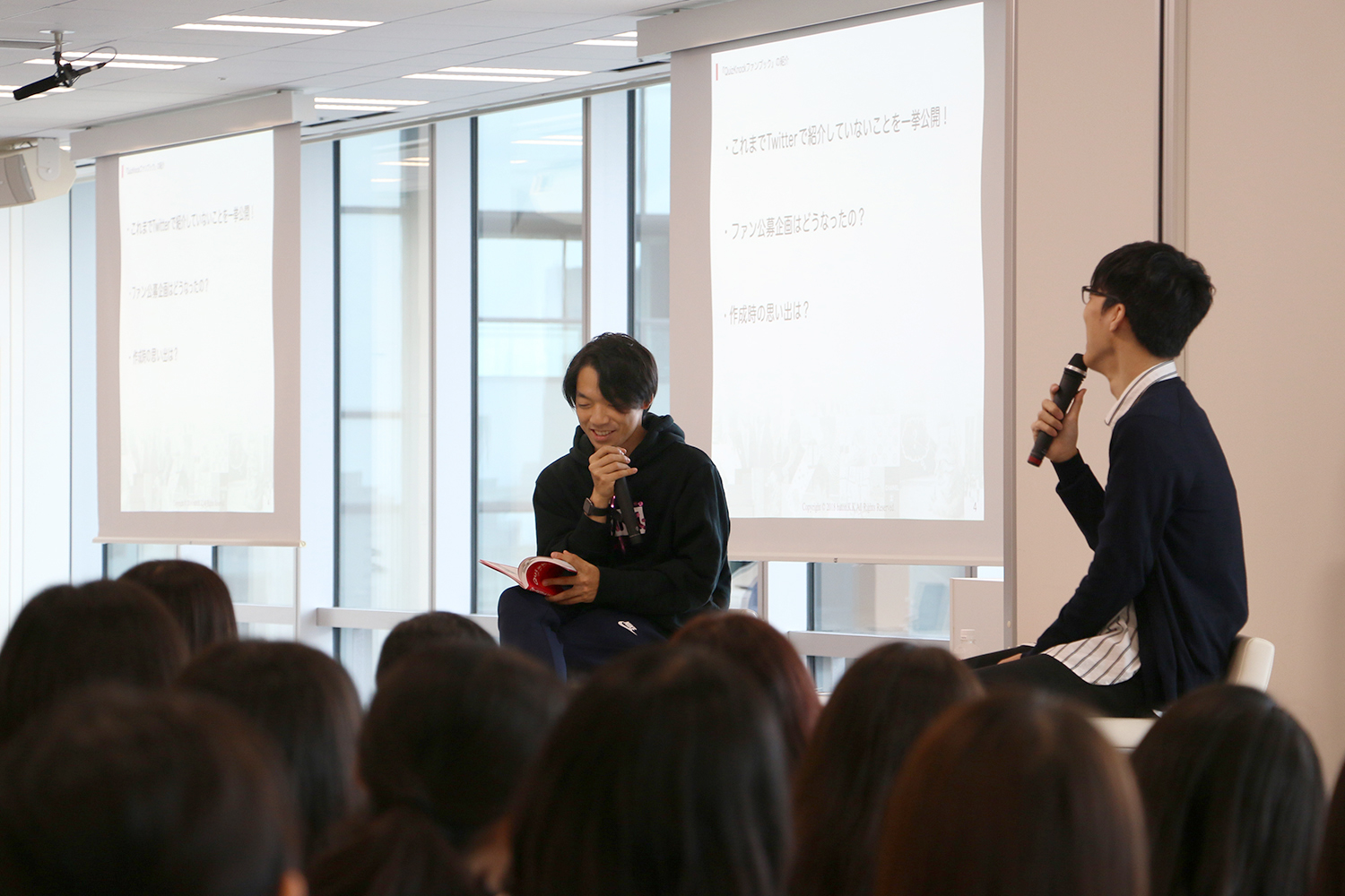 『QuizKnockファンブック』の紹介はもちろん、ファンブック制作時の裏話も!?そして、お客さんと楽しむクイズコーナーへと続きます。
