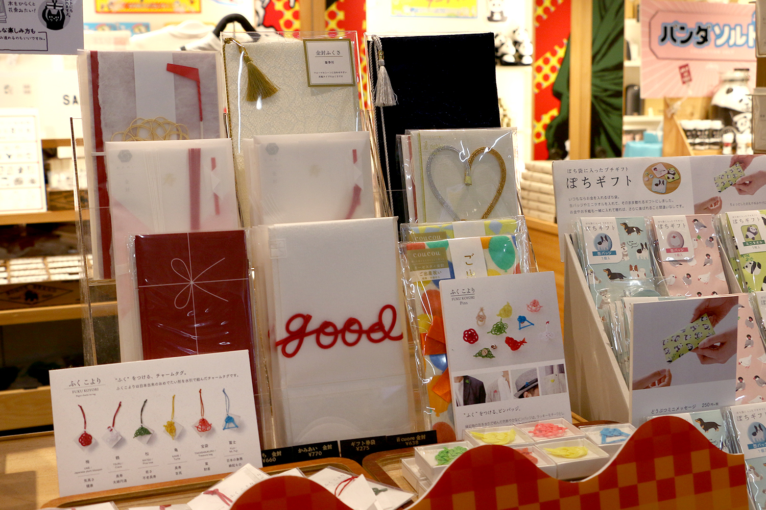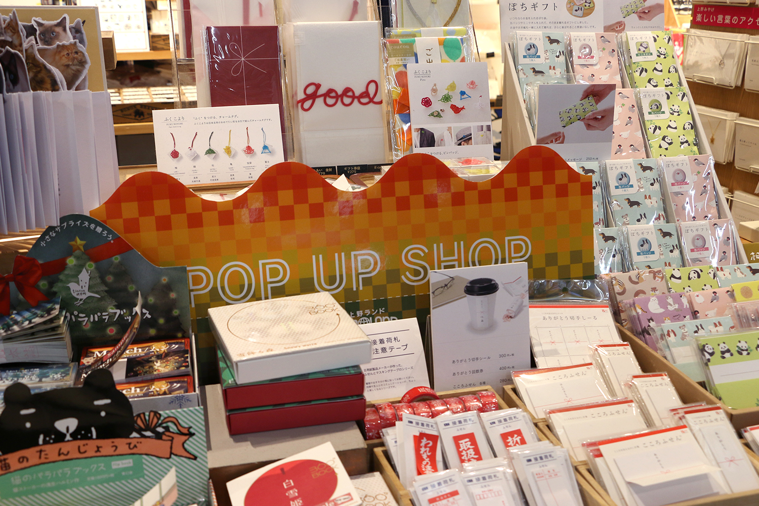 「上野ランド」では「-◯愛 MARUAI こころ くらし 包む-」さんのポップアップショップが開催中です!心を伝えるのし付箋の「こころふせん」をはじめ「ふく こより ピンズ」「袱紗」など