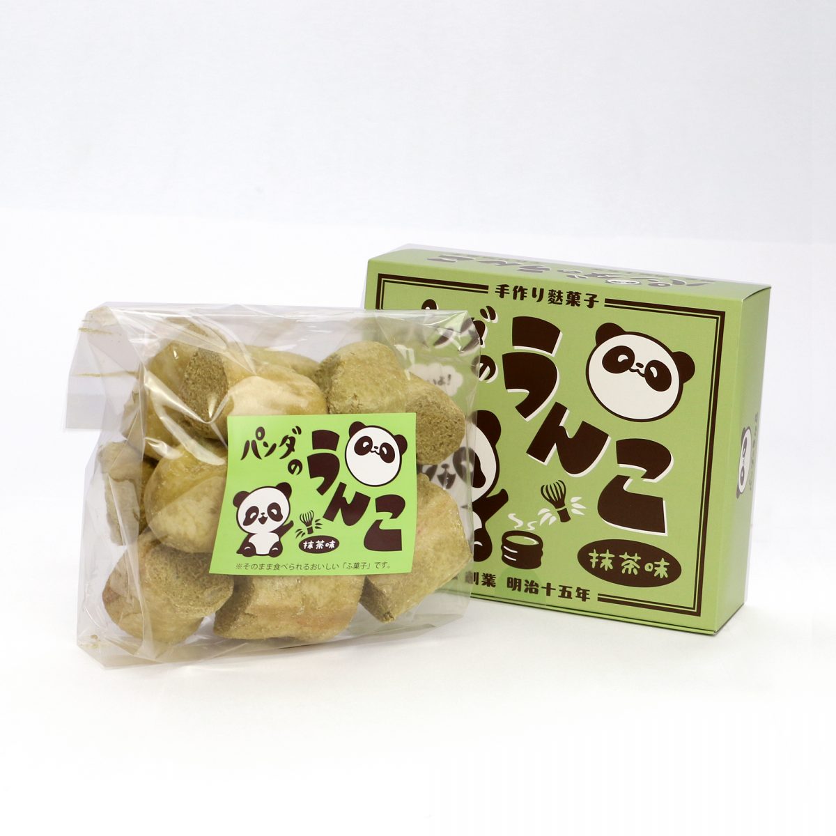 その面白いネーミングとは裏腹に、食べておいしい本格派の麩菓子です! 焼麩に北海道産甜菜糖と京都「宇治抹茶」を加えた糖蜜をたっぷりくるんだ、 外はサクッと中はふわっと病みつきになる美味しさのお菓子。 口いっぱいに広がる抹茶の味は、お年寄りの方からお子さんまでみんなで楽しめます! ぜひインパクト大な「パンダのうんこ」をお土産に♪